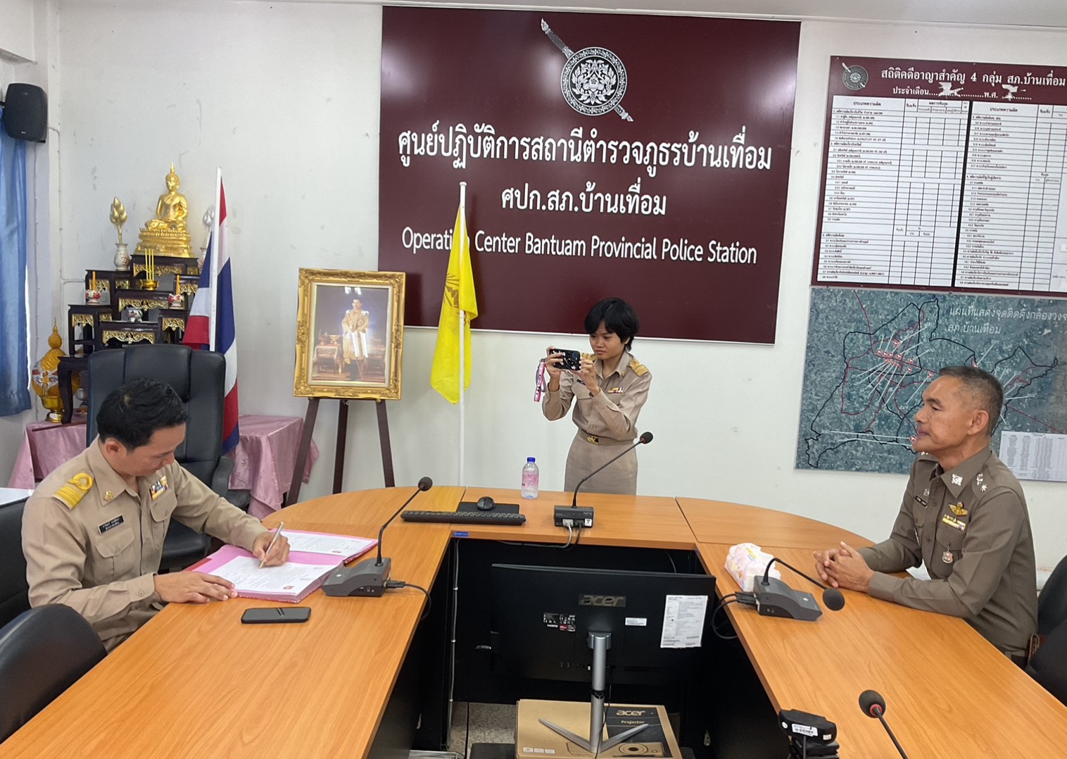 ร่วมลงนามบันทึกข้อตกลงความร่วมมือ(MOU) 15 ธันวาคม 2568 โดย admin-bantueam / การมีส่วนร่วมของหัวหน้าสถานีตำรวจ,ข่าวประชาสัมพันธ์,ข่าวภารกิจผู้บังคับบัญชา 15 ธ.ค.2568 เวลา 10.00 น. พ.ต.อ.จักรทิพย์ กูลพฤกษี ผกก.สภ.บ้านเทื่อม และ นาย ธานินทร์ นวะสิมมา ผู้อำนวยการโรงเรียนบ้านโนนสะอาด ร่วมลงนามบันทึกข้อตกลงความร่วมมือ(MOU) การดำเนินการป้องกันและแก้ไขปัญหายาเสพติดและอบายมุข ในสถานศึกษาฯ ณ ห้องประชุม ศปก. ชั้น 2 สถานีตำรวจภูธรบ้านเทื่อ อำเภอบ้านผือ จังหวัดอุดรธานี จำนวนคนดู: 1