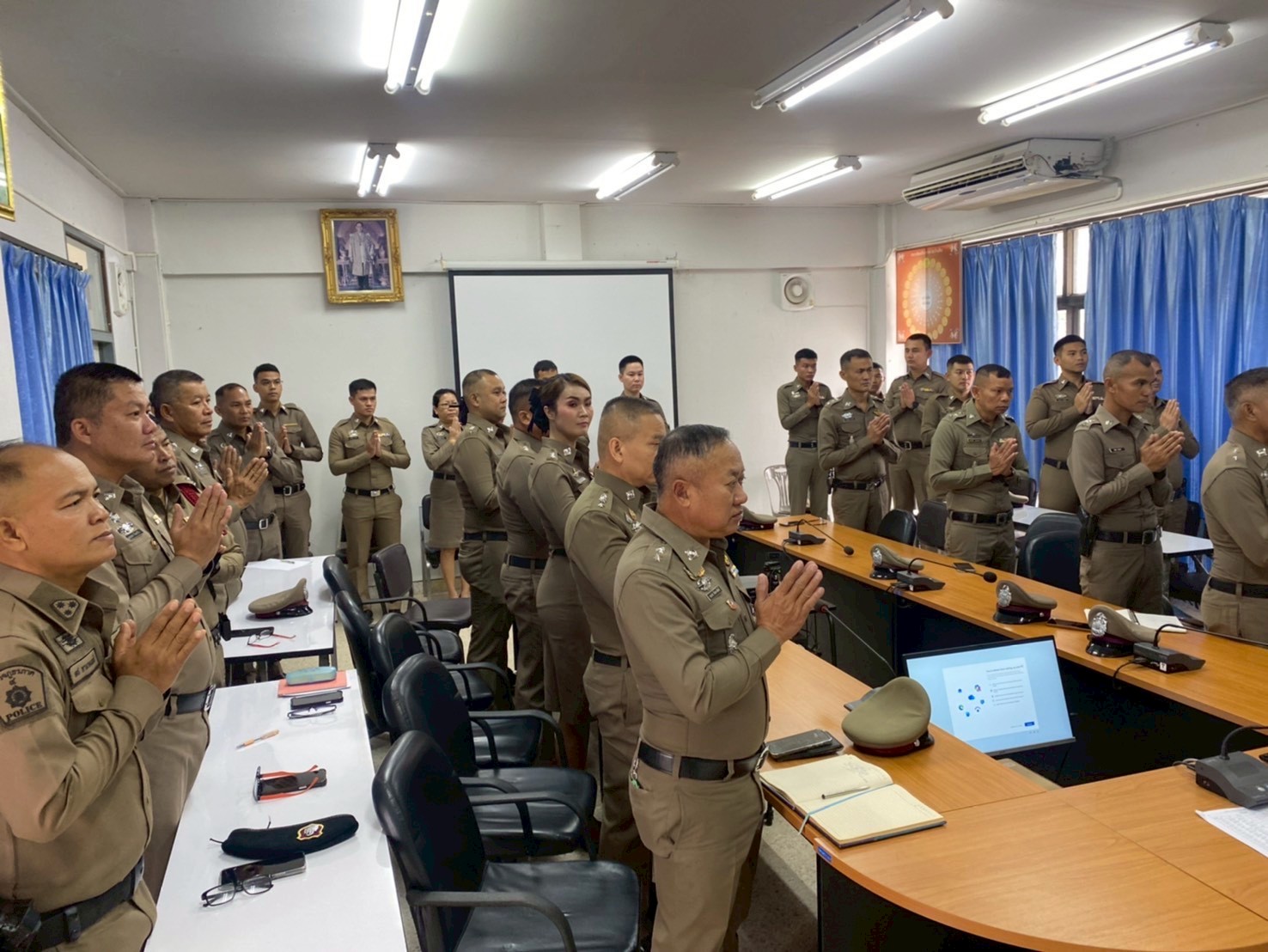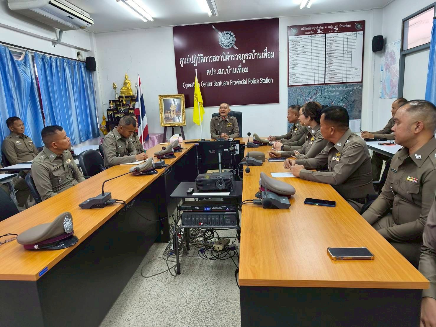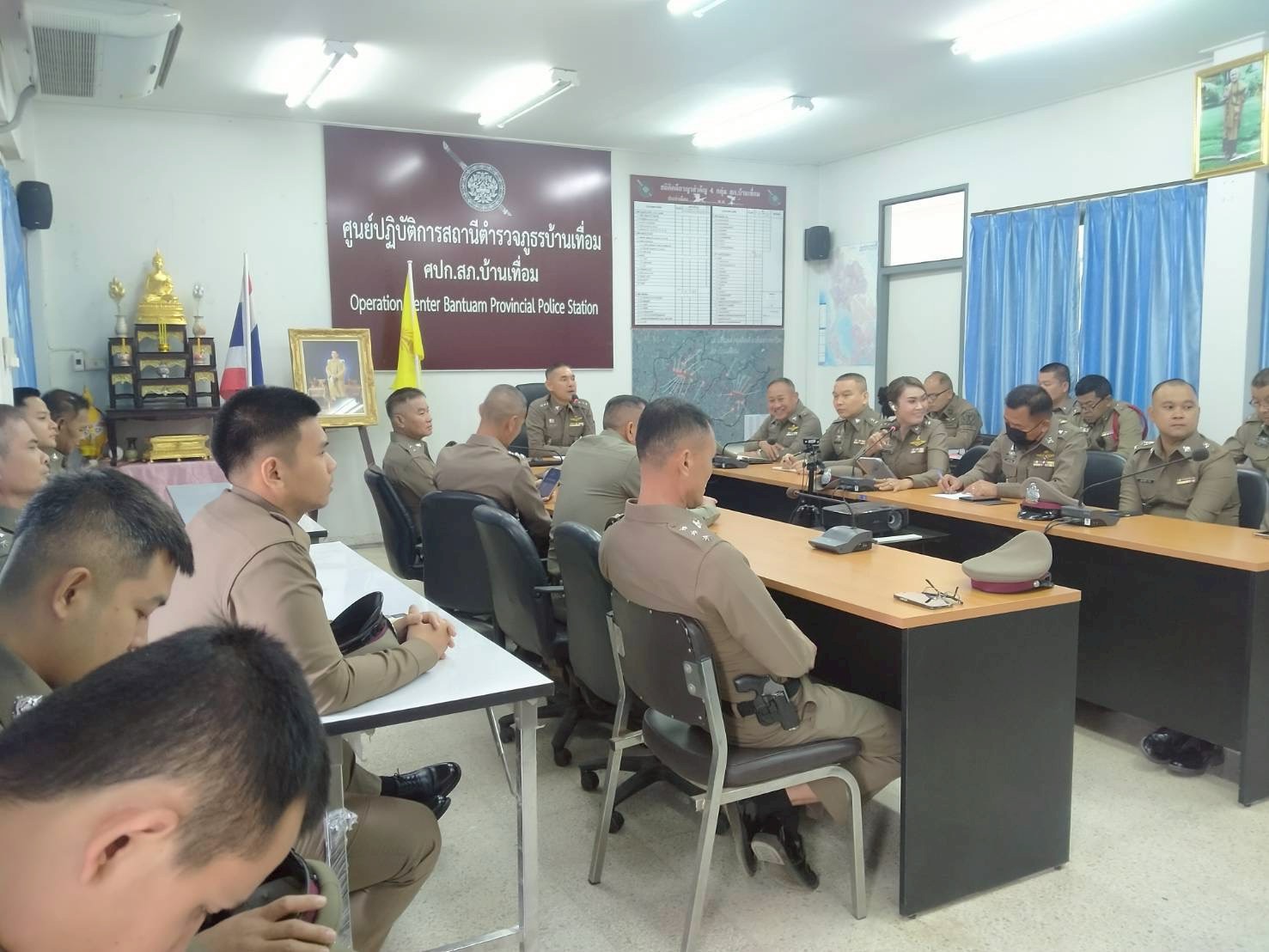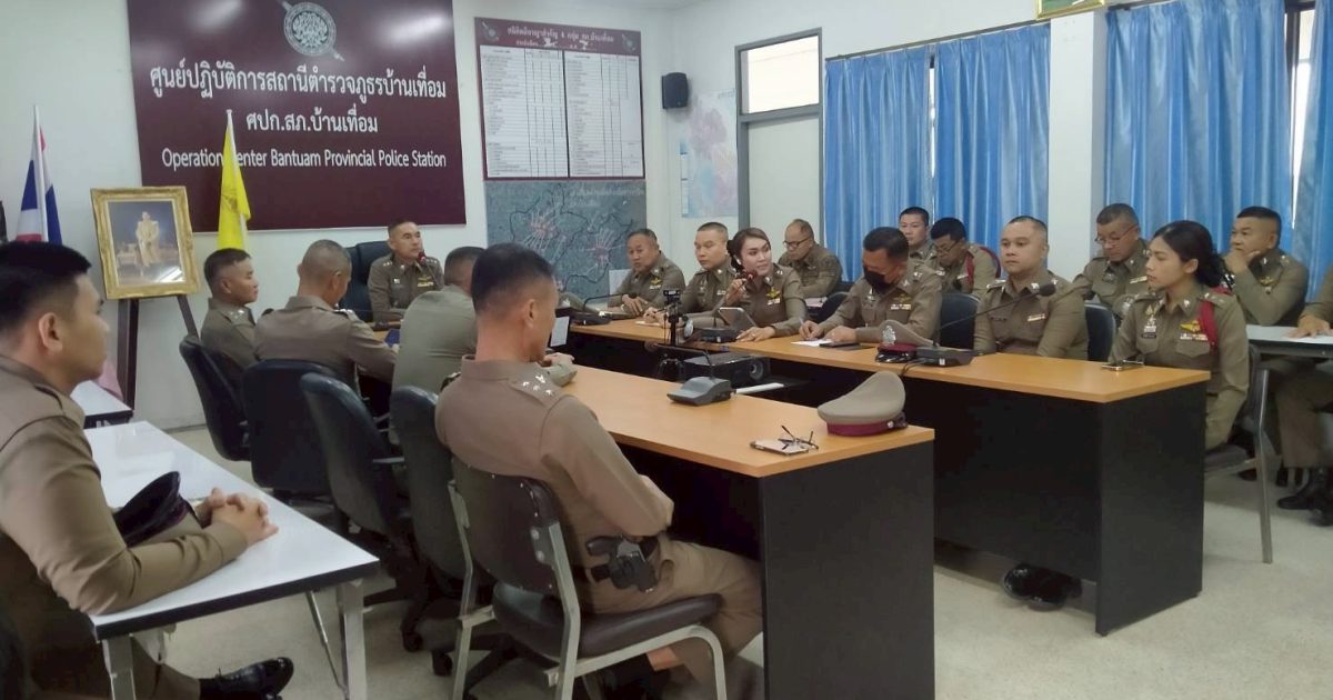 ประชุมประจำเดือน ธันวาคม 2568 15 ธันวาคม 2568 โดย admin-bantueam / การมีส่วนร่วมของหัวหน้าสถานีตำรวจ,ข่าวประชาสัมพันธ์,ข่าวภารกิจผู้บังคับบัญชา 11 ธ.ค.2568 เวลา 09.30 น. พ.ต.อ.จักรทิพย์ กูลพฤกษี ผกก.สภ.บ้านเทื่อม พร้อมด้วยข้าราชการตำรวจในสังกัด เข้าแถวเคารพธงชาติ สวดมนต์ไหว้พระตรวจเครื่องแต่งกาย และประชุมประจำเดือน ธันวาคม 2568 ณ ห้องประชุม ศปก. ชั้น 2 สถานีตำรวจภูธรบ้านเทื่อม อำเภอบ้านผือ จังหวัดอุดรธานี จำนวนคนดู: 1