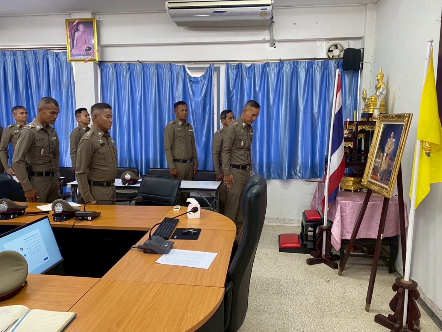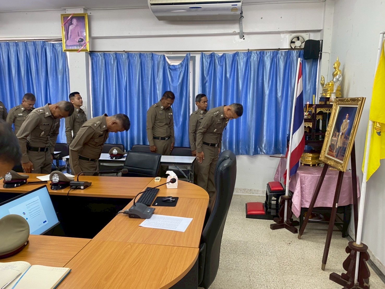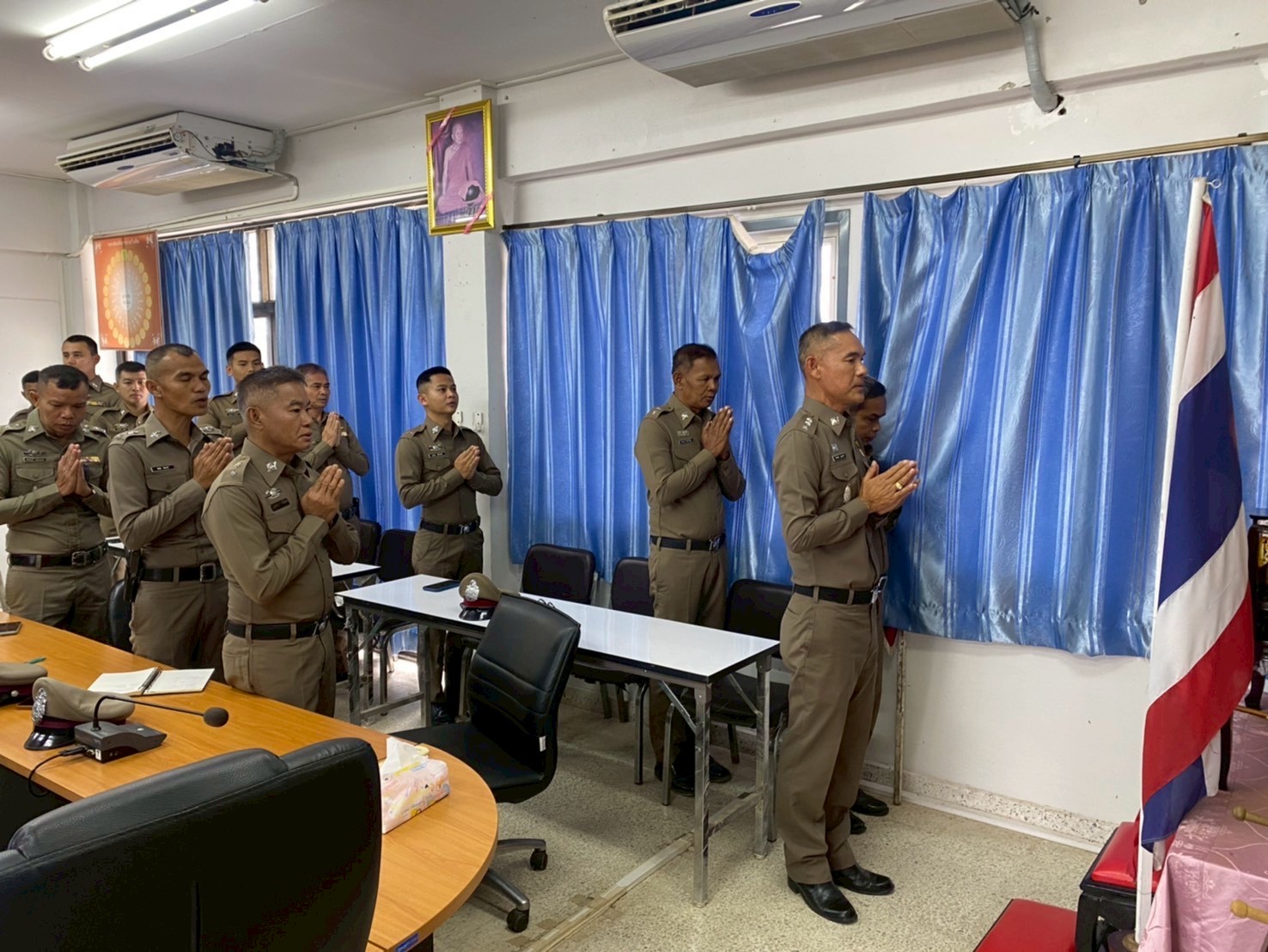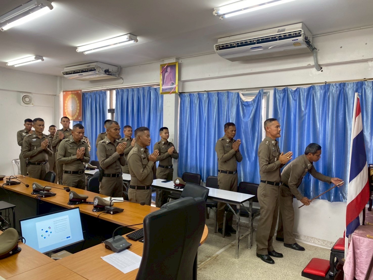 ประชุมประจำเดือน ธันวาคม 2568 15 ธันวาคม 2568 โดย admin-bantueam / การมีส่วนร่วมของหัวหน้าสถานีตำรวจ,ข่าวประชาสัมพันธ์,ข่าวภารกิจผู้บังคับบัญชา 11 ธ.ค.2568 เวลา 09.30 น. พ.ต.อ.จักรทิพย์ กูลพฤกษี ผกก.สภ.บ้านเทื่อม พร้อมด้วยข้าราชการตำรวจในสังกัด เข้าแถวเคารพธงชาติ สวดมนต์ไหว้พระตรวจเครื่องแต่งกาย และประชุมประจำเดือน ธันวาคม 2568 ณ ห้องประชุม ศปก. ชั้น 2 สถานีตำรวจภูธรบ้านเทื่อม อำเภอบ้านผือ จังหวัดอุดรธานี จำนวนคนดู: 1