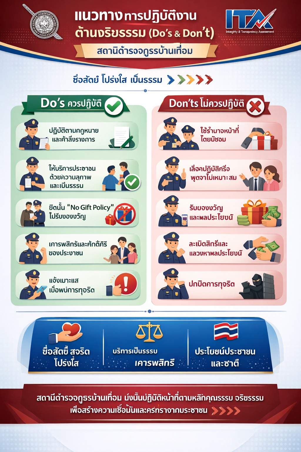 กิจกรรมแนวปฏิบัติ Dos & Don’ts 9 มีนาคม 2569 โดย admin-bantueam / การมีส่วนร่วมของหัวหน้าสถานีตำรวจ,ข่าวประชาสัมพันธ์,ข่าวภารกิจผู้บังคับบัญชา 1 มี.ค.2569 พ.ต.อ.จักรทิพย์ กูลพฤกษี ผกก.สภ.บ้านเทื่อม ได้มีการจัดกิจกรรมโครงการฝึกอบรมเสริมสร้างคุณธรรม จริยธรรมให้แก่บุคลากรขึ้น เพื่อให้บุคลากรทั้งฝ่ายการเมือง และฝ่ายประจำ ทุกระดับ จำนวน 42 คน นำไปใช้ใช้ในการปฏิบัติหน้าที่ ด้วยความชื่อสัตย์ สุจริต มีคุณธรรม จริยธรรม มีจิตสำนึกที่ดีในการปฏิบัติงาน ประพฤติปฏิบัติตนเป็นแบบอย่างที่ดีให้แก่ประชาชาชน ไม่กระทำการขัดกันแห่งผลประโยชน์ หรือมีผลประโยชน์ทับช้อน จำนวนคนดู: 3