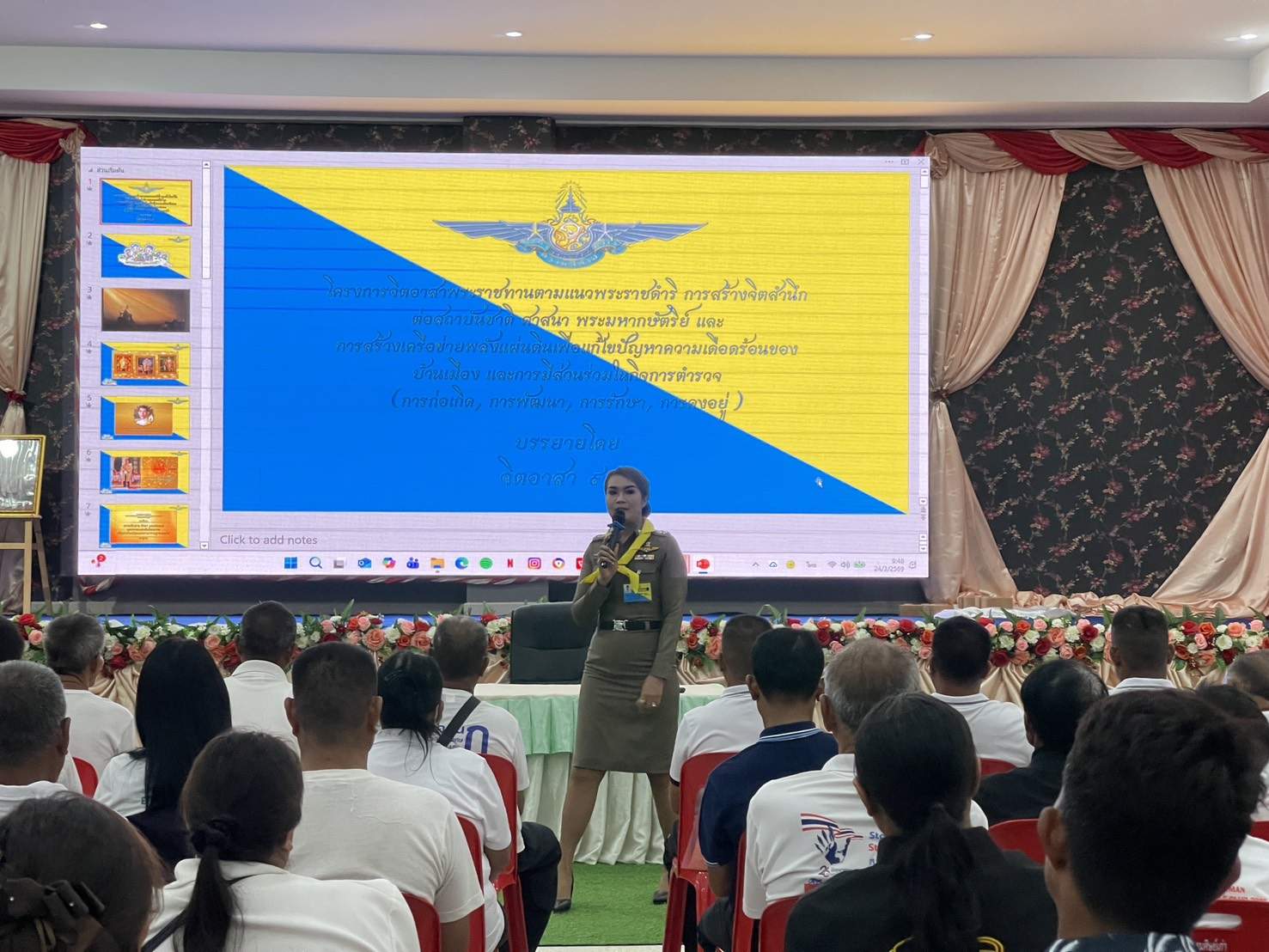 24 มี.ค. 2569 เวลา 09.00-10.30 น. พ.ต.ท.หญิง อสมาภรณ์ เกตุชุม สเตเกอร์ สว.อก.สภ.บ้านเทื่อม เป็นวิทยากรบรรยาย หัวข้อ ความรู้เกี่ยวกับ โครงการจิตอาสาพระราชทานตามแนวพระราชดำริ การสร้างจิตสำนึกต่อสถาบันชาติ ศาสนา พระมหากษัตริย์ และการสร้างเครือข่ายพลังแผ่นดินเพื่อแก้ไขปัญหาความเดือดร้อน