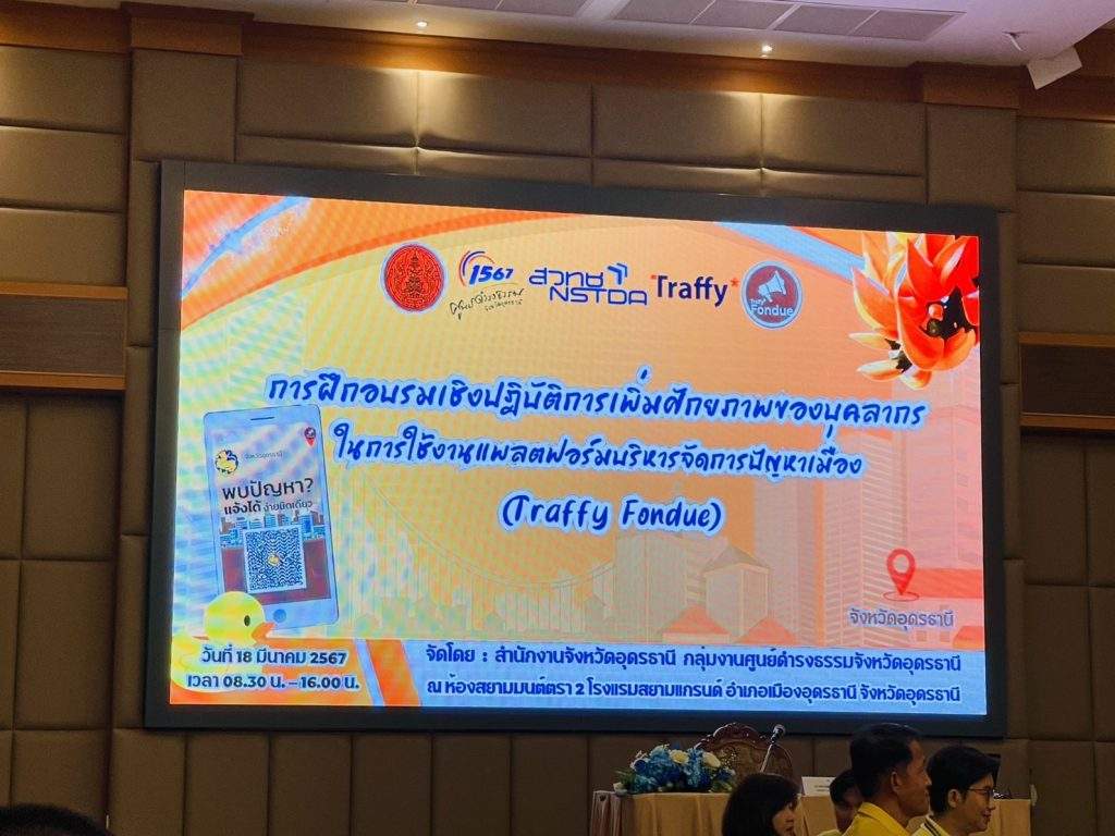 18 มีนาคม 2567 เวลา 09.00-16.30 น. พ.ต.อ.สุรกิจ ค้วนเครือ ผกก.สภ.บ้านเทื่อม มอบหมายให้ พ.ต.ท.หญิง อสมาภรณ์ เกตุชุม สเตเกอร์ สว.อก.สภ.บ้านเทื่อม ร่วมกิจกรรมการอบรม โครงการฝึกอบรมเชิงปฏิบัติการเพิ่มศักยภาพของบุคลากรในการใช้งานแพลตฟอร์มบริหารจัดการปัญหาเมือง (Traffy Fondue) โดยมี นายณัฐพงศ์ คำวงศ์ปิน รองผู้ว่าราชการจังหวัดอุดรธานี เป็นประธานในพิธีเปิด มีผู้เข้าร่วมฝึกอบรม จำนวน 193 คน ณ ห้องสยามมนต์ตรา โรงแรมสยามแกรนด์ อำเภอเมืองอุดรธานี จังหวัดอุดรธานี