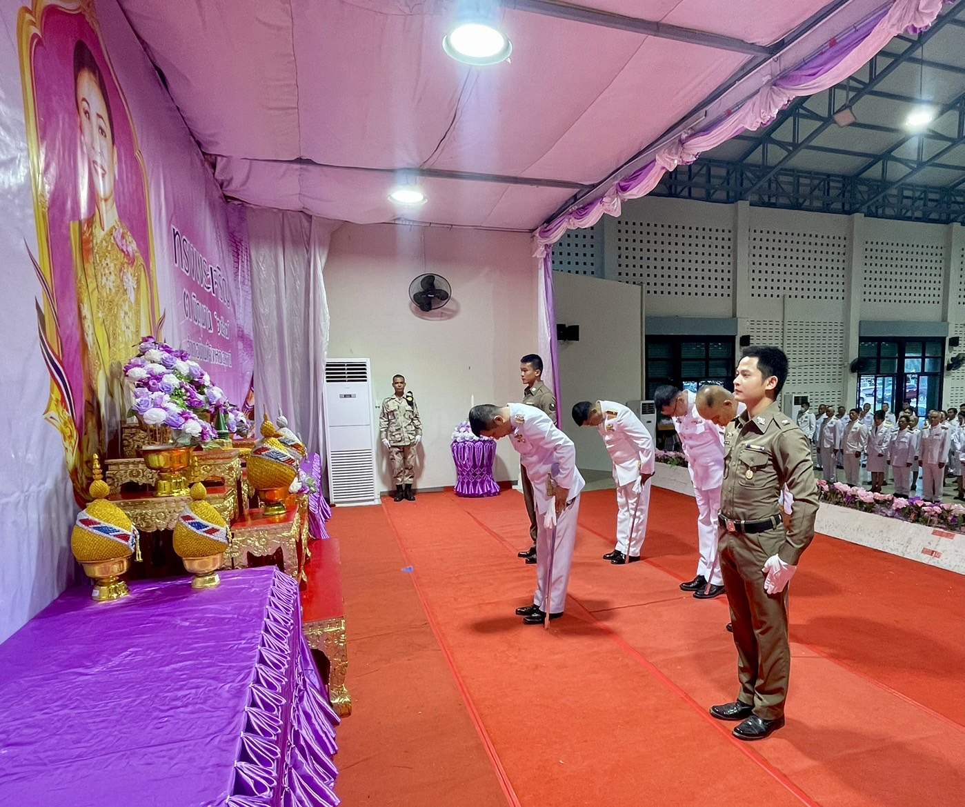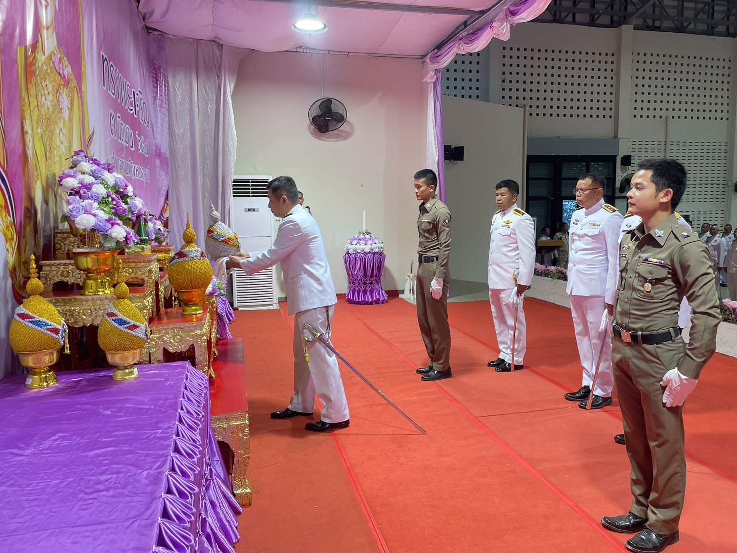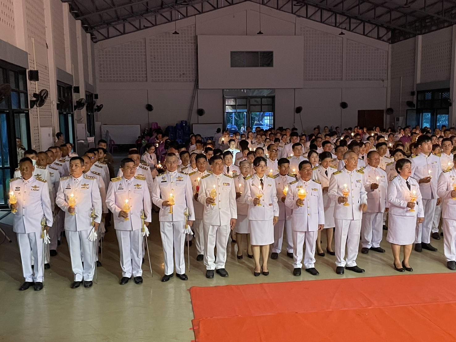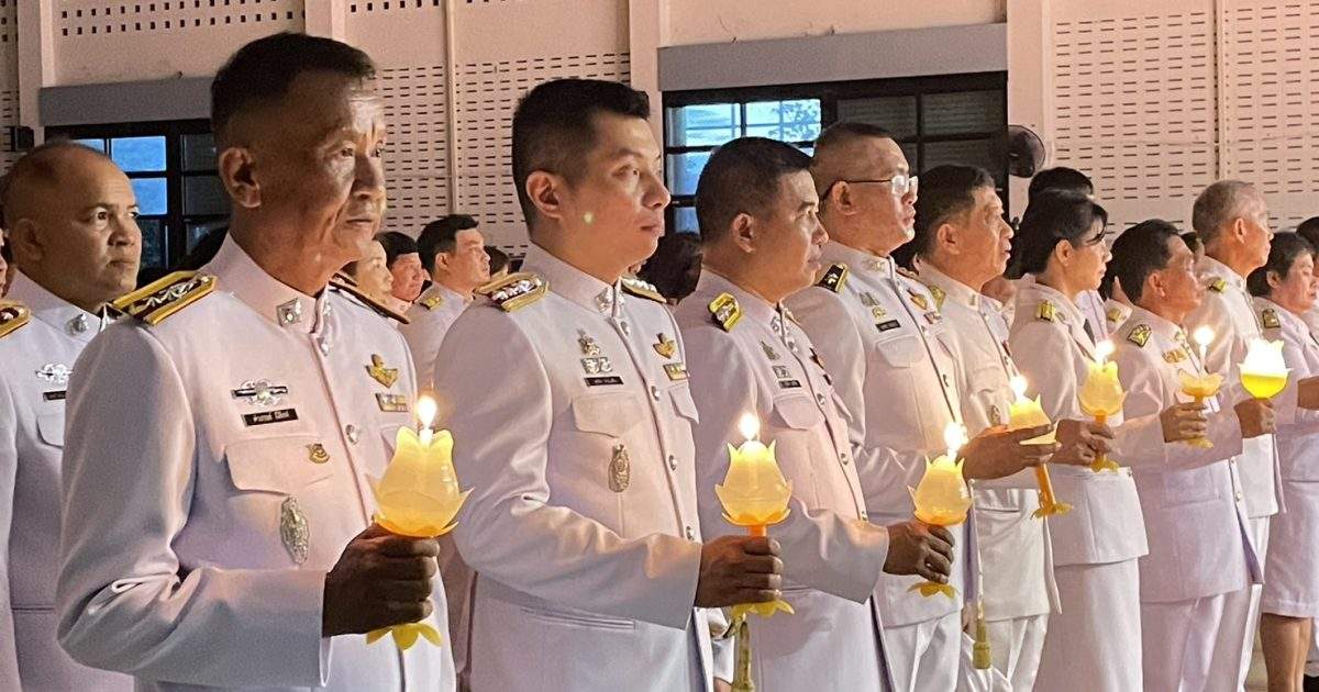 ร่วมวางพานพุ่มและจุดเทียนถวายพระพรชัยมงคลฯ 4 มิถุนายน 2567 โดย admin-bantueam / ข่าวประชาสัมพันธ์,ข่าวกิจกรรม,ข่าวประชาสัมพันธ์,ข่าวภารกิจผู้บังคับบัญชา 3 มิ.ย.2567 เวลา 18.00 น. พ.ต.อ.สุรกิจ ค้วนเครือ ผกก.สภ.บ้านเทื่อม พร้อมข้าราชการตำรวจ สภ.บ้านเทื่อม ร่วมกับข้าราชการหน่วยงานต่างๆ ประชาชน อำเภอบ้านผือ ร่วมพิธีถวายเครื่องสักการะ วางพานพุ่ม และจุดเทียนถวายพระพรชัยมงคล เฉลิมพระเกียรติ เนื่องในโอกาสวันเฉลิมพระชนมพรรษาสมเด็จพระนางเจ้า ฯ พระบรมราชินี โดยมี นายจรูญ บุหิรัญ นายอำเภอบ้านผือ เป็นประธานในพิธี ณ หอประชุมบริบาลภูมิเขตต์ จำนวนคนดู: 7