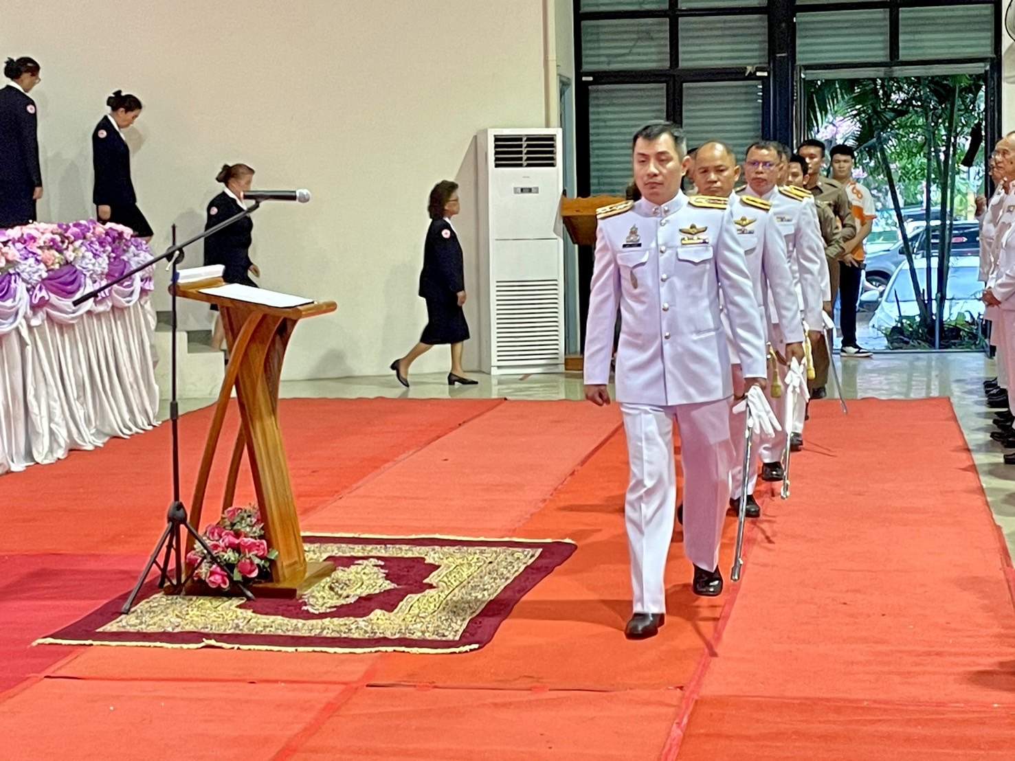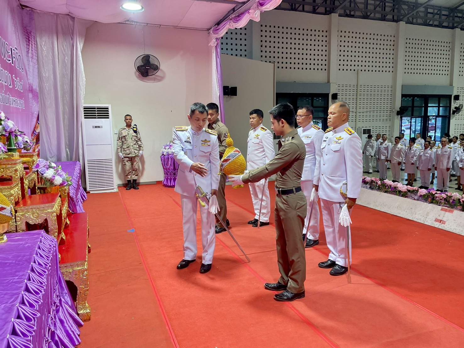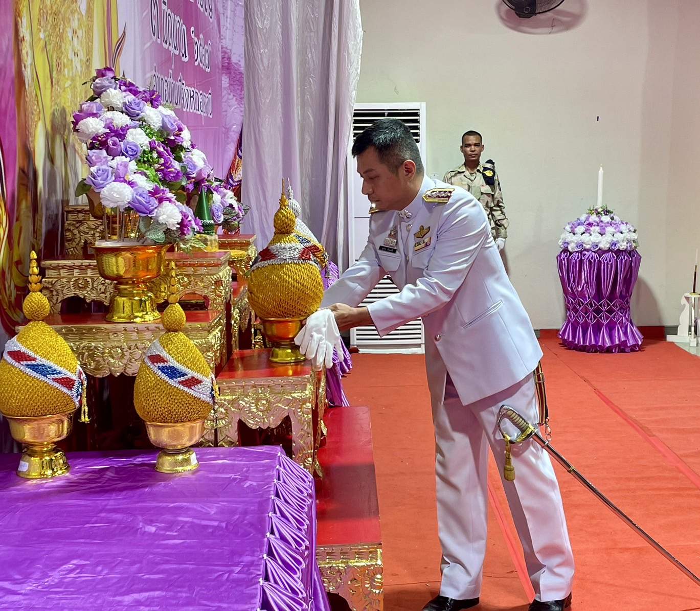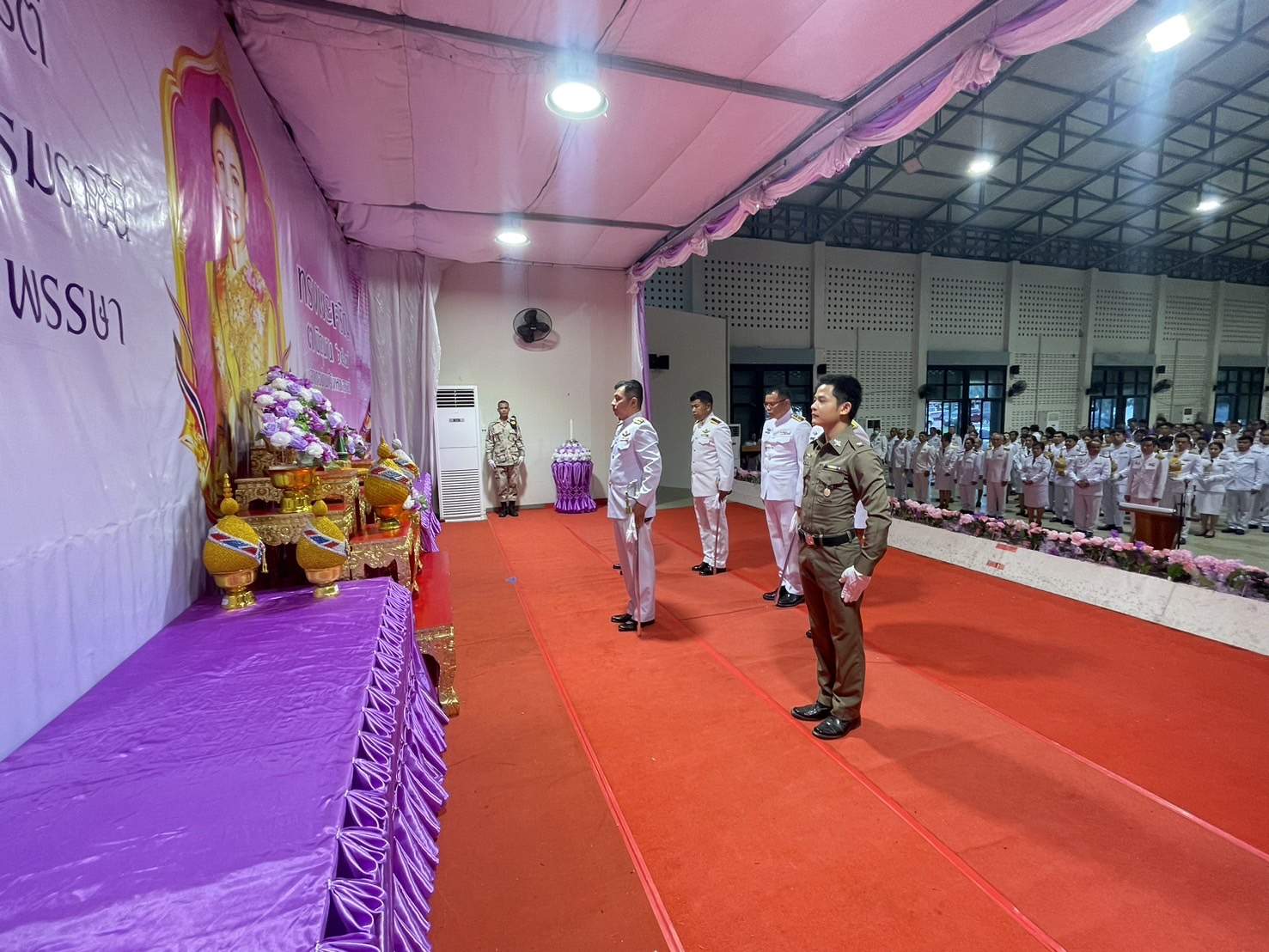 ร่วมวางพานพุ่มและจุดเทียนถวายพระพรชัยมงคลฯ 4 มิถุนายน 2567 โดย admin-bantueam / ข่าวประชาสัมพันธ์,ข่าวกิจกรรม,ข่าวประชาสัมพันธ์,ข่าวภารกิจผู้บังคับบัญชา 3 มิ.ย.2567 เวลา 18.00 น. พ.ต.อ.สุรกิจ ค้วนเครือ ผกก.สภ.บ้านเทื่อม พร้อมข้าราชการตำรวจ สภ.บ้านเทื่อม ร่วมกับข้าราชการหน่วยงานต่างๆ ประชาชน อำเภอบ้านผือ ร่วมพิธีถวายเครื่องสักการะ วางพานพุ่ม และจุดเทียนถวายพระพรชัยมงคล เฉลิมพระเกียรติ เนื่องในโอกาสวันเฉลิมพระชนมพรรษาสมเด็จพระนางเจ้า ฯ พระบรมราชินี โดยมี นายจรูญ บุหิรัญ นายอำเภอบ้านผือ เป็นประธานในพิธี ณ หอประชุมบริบาลภูมิเขตต์ จำนวนคนดู: 7