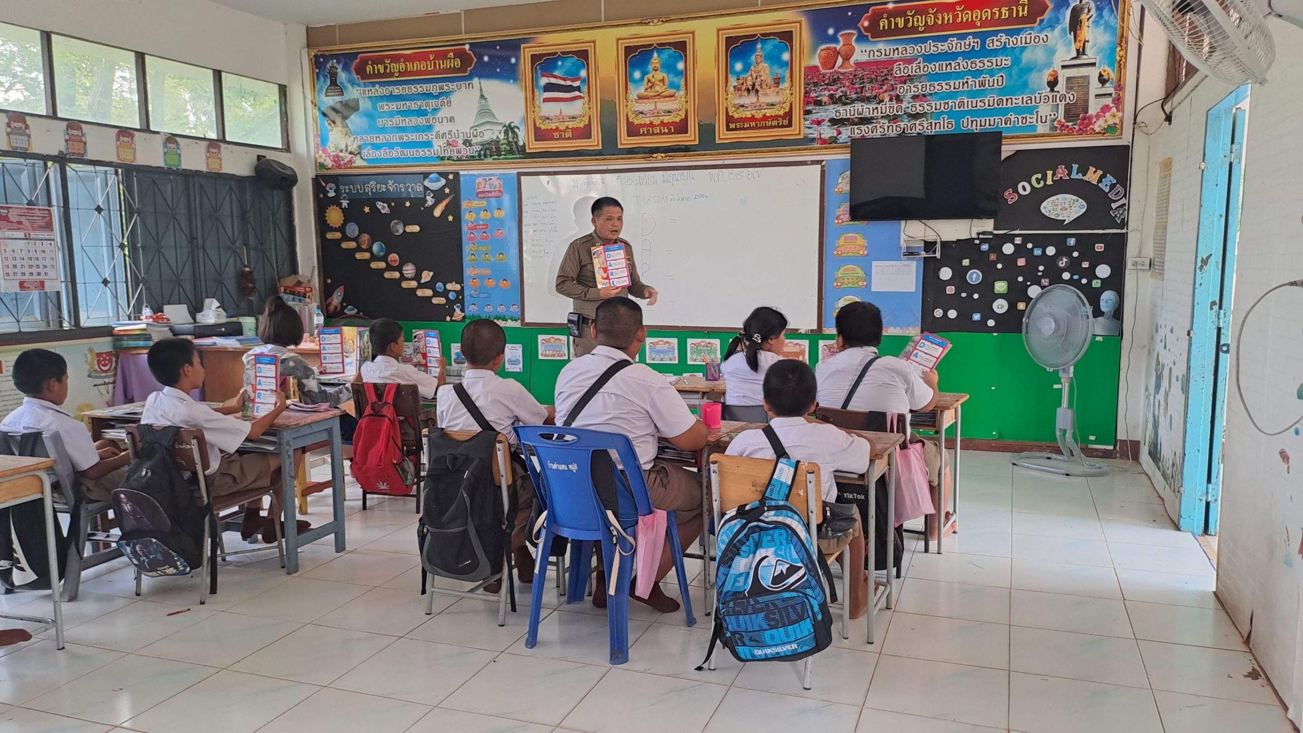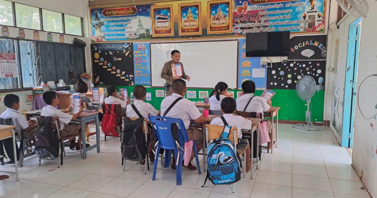 20 มิ.ย.2567 เวลาประมาณ 14.30 น. พ.ต.อ.สุรกิจ ค้วนเครือ ผกก.สภ.บ้านเทื่อม พ.ต.ท.จีระวัฒน์ โพธินา รอง ผกก.ป.สภ.บ้านเทื่อม พ.ต.ต.สมคิด จันทะดี สวป. สภ.บ้านเทื่อม ได้มอบหมายให้ ด.ต.กอบกล้า มงคลภูริกุล ผบ.หมู่ (ป.)ฯเข้าสอน นักเรียน ชั้น ประถมศึกษาปีที่ 5 โรงเรียนราษฎร์จุฬาสามัคคี ตามโครงการการศึกษาเพื่อต่อต้านการใช้ยาเสพติดในเด็กนักเรียน (D.A.R.E.ประเทศไทย)ได้รับความร่วมมือจากคณะครู และนักเรียนเป็นอย่างดี