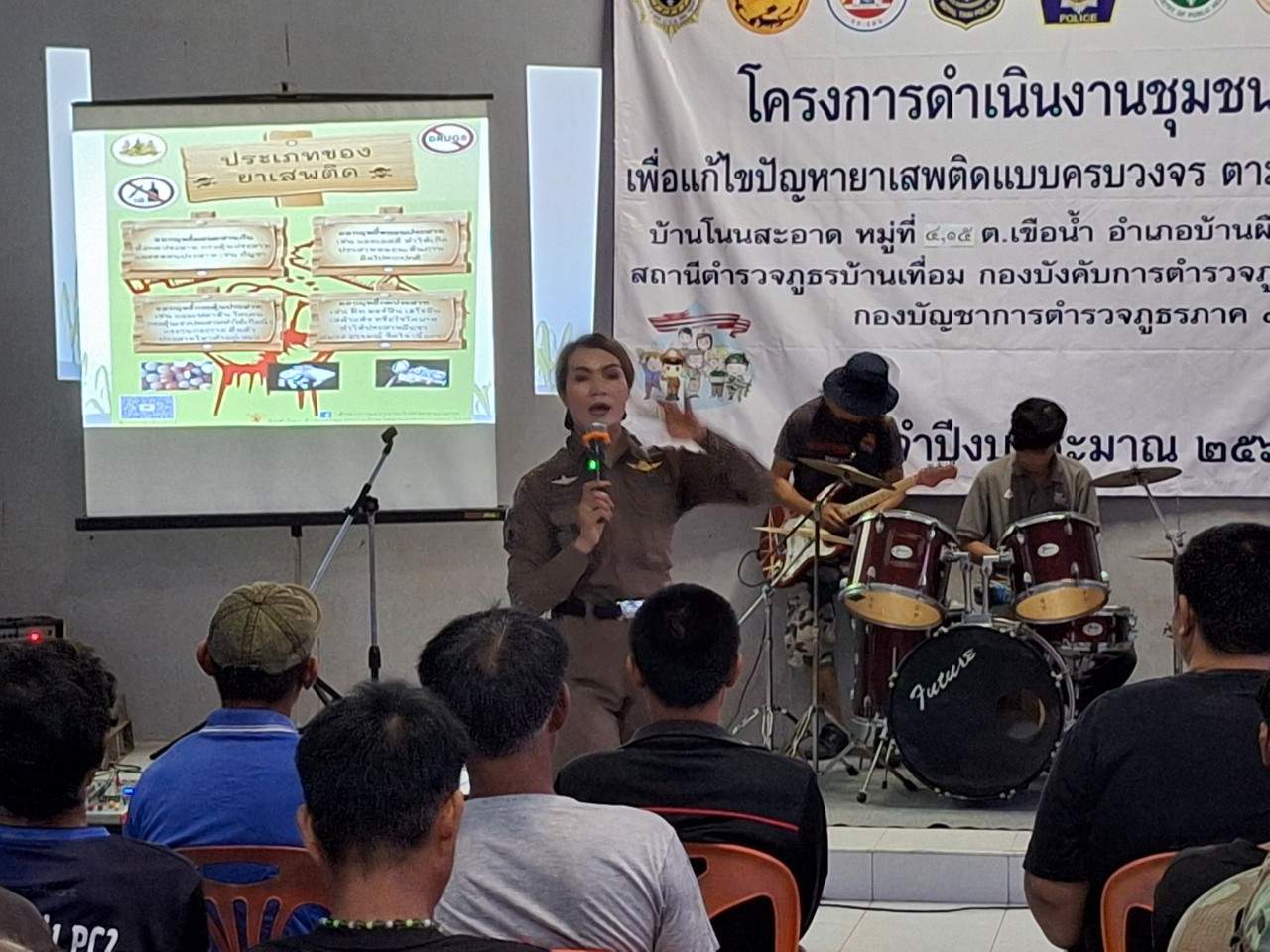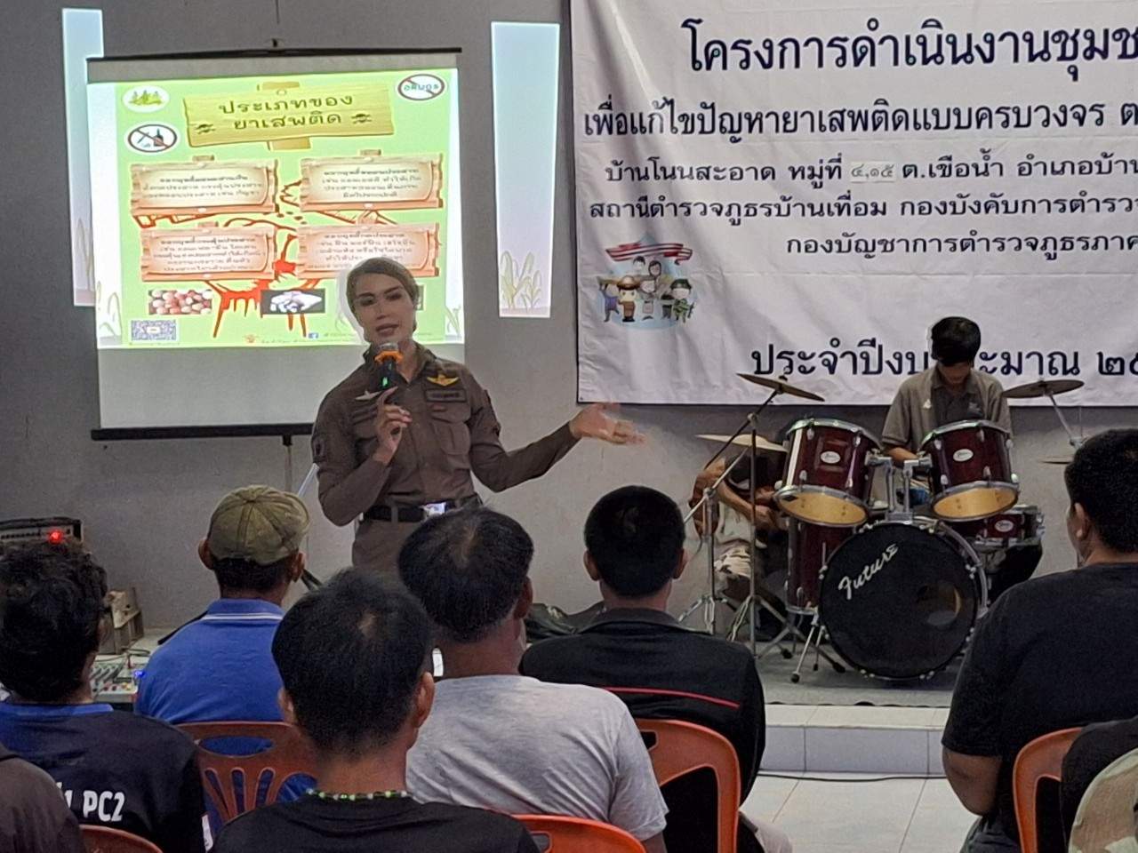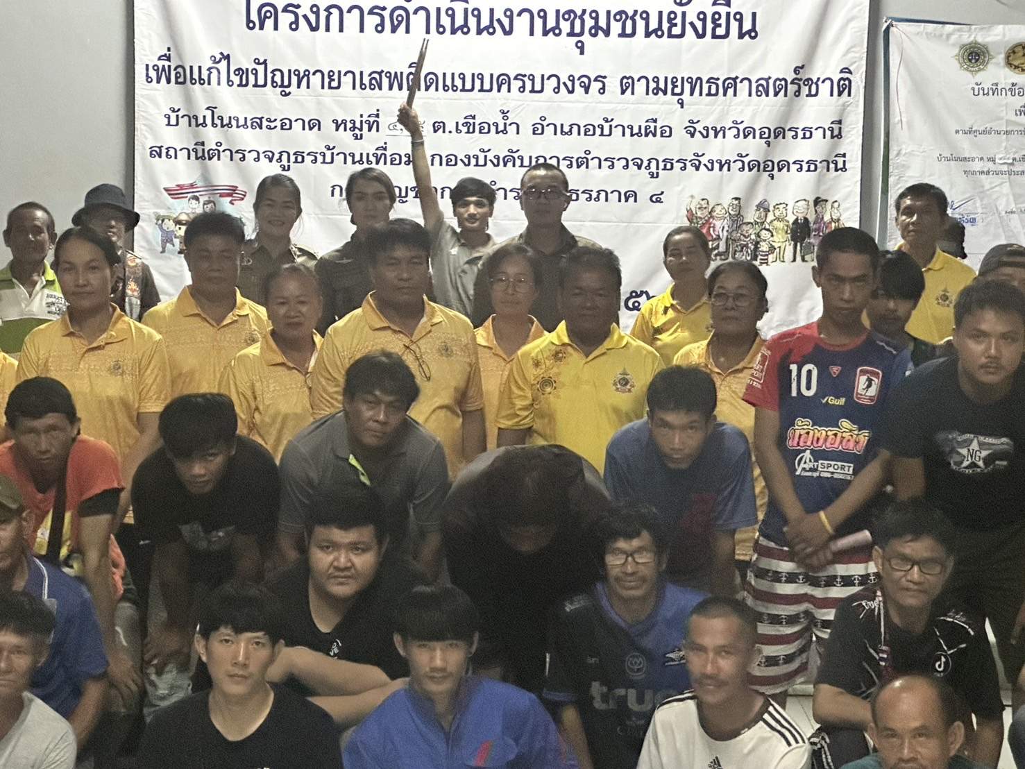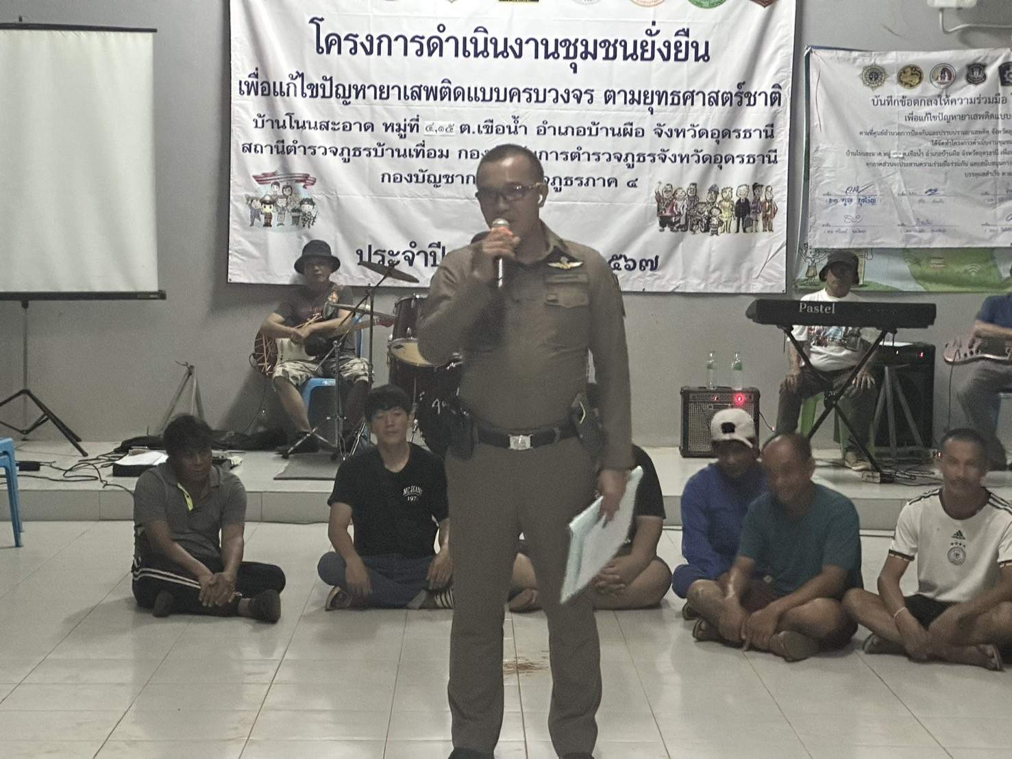 9 ก.ค.2567 เวลา 18.00 – 20.00 น. พ.ต.ท.จีระวัฒน์ โพธินา รอง ผกก.ป.ฯ, พ.ต.ต.สมคิด จันทะดี สวปฯ พร้อมชุดปฏิบัติการชุมชนยั่งยืน ร่วมกับ ฝ่ายปกครอง, สาธารณสุข, ผู้นำหมู่บ้าน, อสม. ประจำหมู่บ้านโนนสะอาด ม.4, ม.15 ต.เขือน้ำ อ.บ้านผือ จ.อุดรธานี ร่วมกันทำกิจกรรมบำบัดติดตามผู้ใช้ ผู้เสพ ผู้ติดยาเสพติด (CBTx) ตรวจปัสสาวะครั้งที่ 4 ตามโครงการชุมชนบำบัดปอย่างยั่งยืนในพื้นที่แพร่ระบาดยาเสพติดตามนโยบายเร่งด่วนของรัฐบาล ณ ศาลาประชาคมบ้านโนนสะอาด