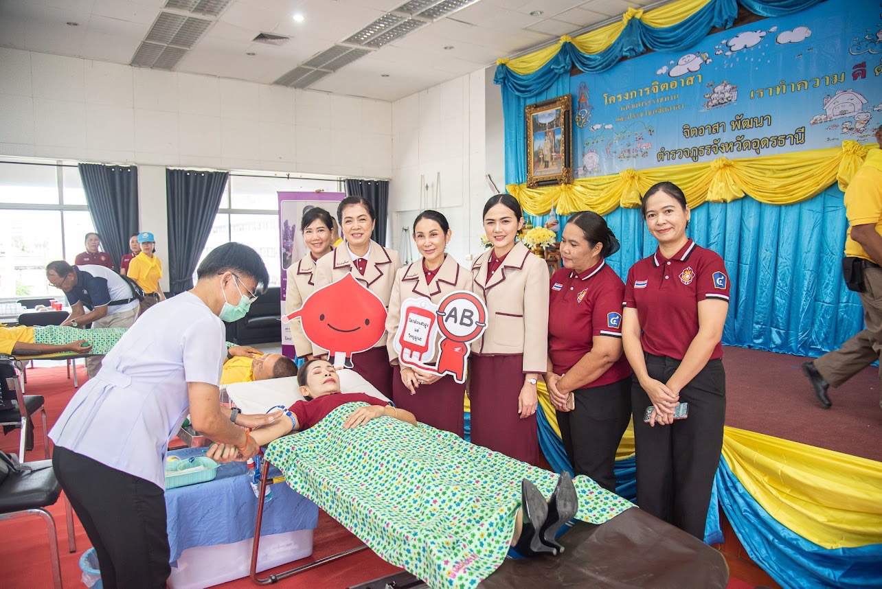 21 สิงหาคม 2567 เวลา 08.00 -12.00 น. พ.ต.ท.มานิตย์ แก้วเจริญ รหัส 2-3 ก 044 รอง ผกก.ป.สภ.เมืองอุดรธานี พ.ต.ท. หญิง อสมาภรณ์ เกตุชุม สเตเกอร์ รหัส B-206 สว.อก.สภ.บ้านเทื่อม ร่วมกิจกรรมจิตอาสาบริจาคโลหิต เพื่อนำไปเก็บไว้เป็นโลหิตสำรอง ไว้ให้ความช่วยเหลือผู้ประสบอุบัติเหตุ อุบัติภัย และผู้ป่วยรับการผ่าตัดที่ต้องการโลหิต ตามแผนเหล่ากาชาดจังหวัดอุดรธานี ร่วมกับโรงพยาบาลอุดรธานี เนื่องในโอกาส 12 สิงหาคม 2567 วันคล้ายวันพระราชสมภพ สมเด็จพระนางเจ้าสิริกิติ์ พระบรมราชินีนาถ พระบรมราชชนนีพันปีหลวง พระบรมราชินีนาถในพระบาทสมเด็จพระบรมชนกาธิเบศร มหาภูมิพลอดุลยเดชมหาราช บรมนาถบพิตร และวันแม่แห่งชาติ โดยมี พล.ต.ต.สรรธาน อินทรจักร์ ผบก.ภ.จว.อุดรธานี พร้อมด้วย คุณจิรพันธ์ อินทรจักร์ ประธานแม่บ้านตำรวจภูธรจังหวัดอุดรธานี และข้าราชการตำรวจพิสูจน์หลักฐาน, ตรวจคนเข้าเมือง ตำรวจท่องเที่ยว ข้าราชการตำรวจในสังกัด คณะแม่บ้านตำรวจ ณ สถานีตำรวจภูธรเมืองอุดรธานี