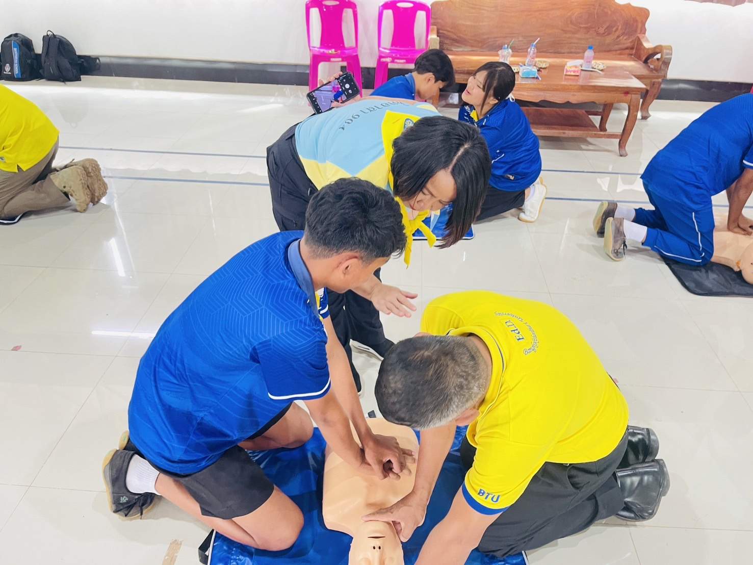 - เพื่อเป็นการเพิ่มประสิทธิภาพของผู้เข้ารับการอบรมด้วยการทำ CPR ร่วมกับการใช้เครื่อง AED ในผู้ประสบการหยุดเต้นของหัวใจระหว่างขอความช่วยเหลือและบุคลากรทางการแพทย์กำลังเดินทางมา