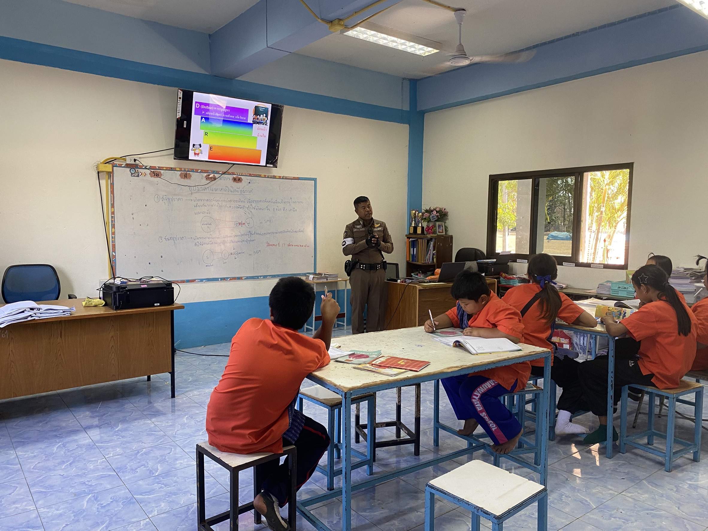 13 ก.พ.2568 เวลา 14.30 -15.30 น. พ.ต.อ.สุรกิจ ค้วนเครือ ผกก.สภ.บ้านเทื่อม พ.ต.ท.จีระวัฒน์ โพธินา รอง ผกก.ป.สภ.บ้านเทื่อม พ.ต.ต.สมคิด จันทะดี สวป. สภ.บ้านเทื่อม ได้มอบหมายให้ ร.ต.ท.พูลทรัพย์ ศรีปัจฉิม รอง สว.(ป)ฯ ด.ต.กอบกล้า มงคลภูริกุล ครูตำรวจ D.A.R.E.เข้าทำการสอนที่ โรงเรียนสะคุวิทยา ชั้น ป.5 ต.หนองหัวคู โรงเรียนบ้านหลุมข้าว ตามโครงการการศึกษา เพื่อต่อต้านการใช้ยาเสพติดในเด็กนักเรียน (D.A.R.E.ประเทศไทย) ได้รับความร่วมมือจาก ครู นร.เป็นอย่างดี