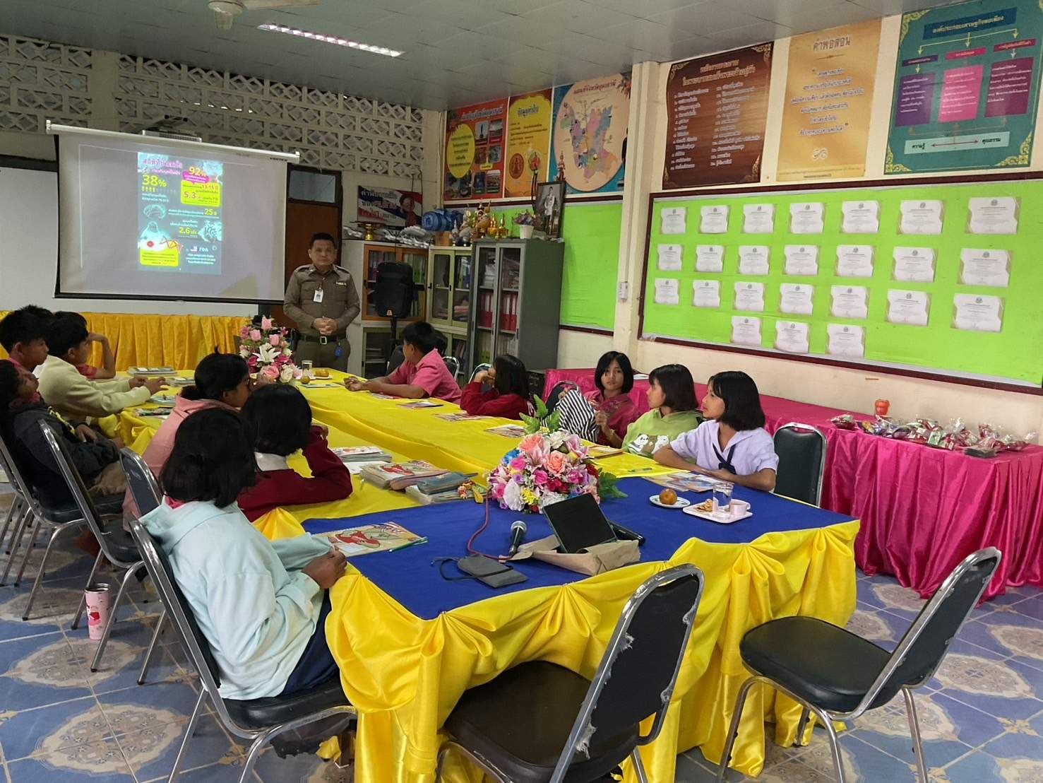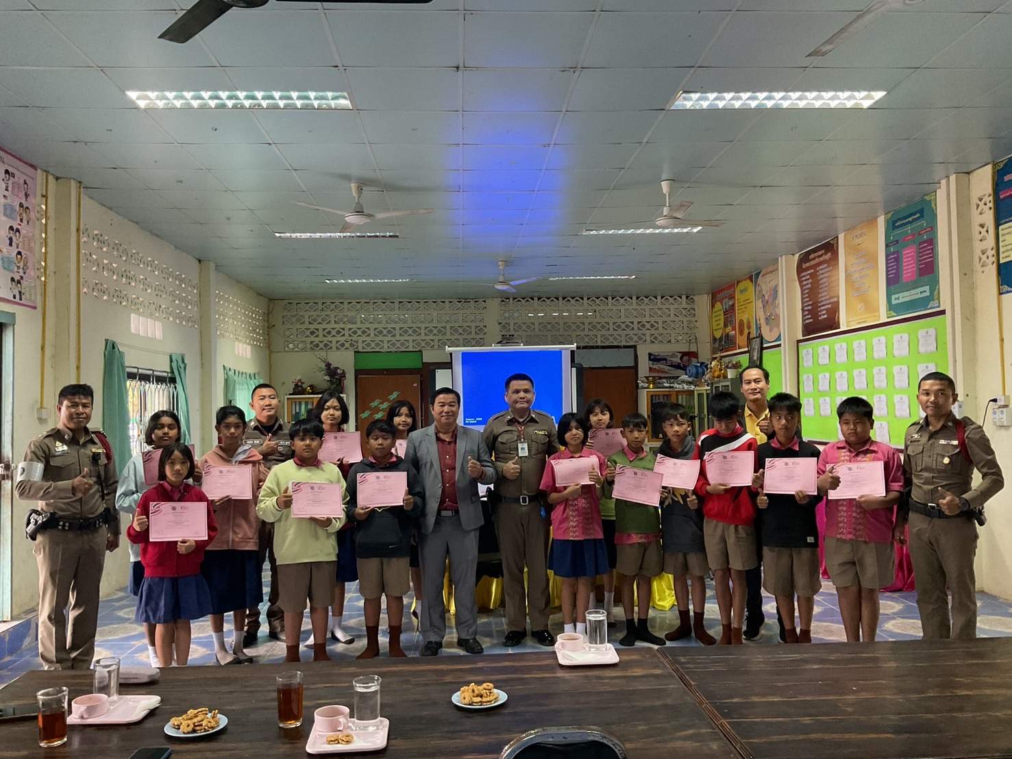 25 ก.พ.2568 เวลา 09.00-11.30 น. พ.ต.อ.สุรกิจ ค้วนเครือ ผกก.สภ.บ้านเทื่อม พ.ต.ท.จีระวัฒน์ โพธินา รองผกก.ป.สภ.บ้านเทื่อม พ.ตท.สมคิด จันทะดี สวป. สภ.บ้านเทื่อม มอบหมายให้ ร.ต.ท.พูลทรัพย์ ศรีปัจฉิม ด.ต.กอบกล้า มงคลภูริกุล จ.ส.ต.วิษนุ บุญสิทธิ์ จ.ส.ต.สมชาย สัพโส (ครูตำรวจแดร์) เข้าจัดกิจกรรม มอบความรู้เกี่ยวกับ ภัยยาเสพติด และ บุหรี่ไฟฟ้า ให้แก่ เด็กนักเรียนชั้น ป.5 ,ป.6 โรงเรียนบ้านกุดเม็ก ตามโครงการการศึกษา เพื่อต่อต้านการใช้ยาเสพติด ในเด็กนักเรียน (D.A.R.E.ประเทศไทย) ได้รับความร่วมมือจากครู และนักเรียนเป็นอย่างดี