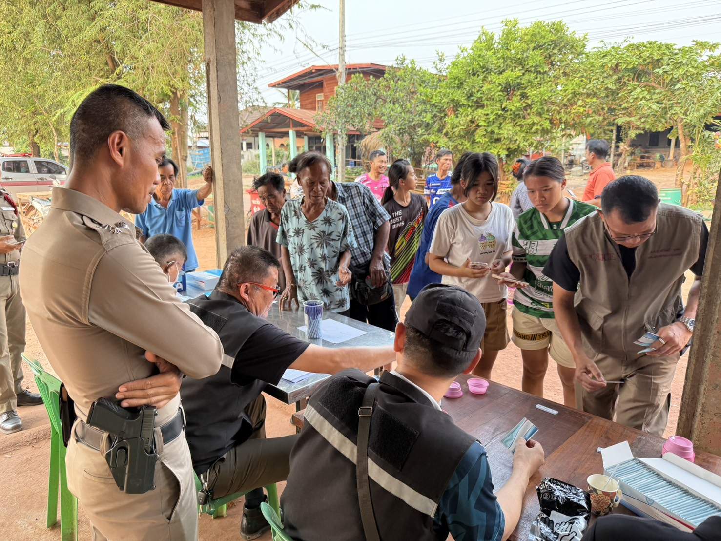 โครงการ Walk-in 28 มีนาคม 2568 โดย admin-bantueam / ข่าวประชาสัมพันธ์ 27มี.ค.2568 พ.ต.อ.นพดล วิเศษศรี ผกก.สภ.บ้านเทื่อม พ.ต.ท.จีระวัฒน์ โพธินา รอง ผกก.ป.สภ.บ้านเทื่อม มอบหมายให้ พ.ต.ท.สมคิด จันทะดี สวป.สภ.บ้านเทื่อม พร้อมชุดปฎิบัติการตำบลยั่งยืน ลงพื้นที่ตรวจคัดกรองค้นหาผูัเสพตามโครงการแบบ Walk-in ณ ศาลาประชาคม บ้านสะคุ ม.2,ม.8 ผลการปฎิบัติพบผลตรวจเป็นบวก จำนวน 7 ราย ทั้งนี้ได้รับความร่วมมือจากทุกฝ่ายเป็นอย่างดี จำนวนคนดู: 2