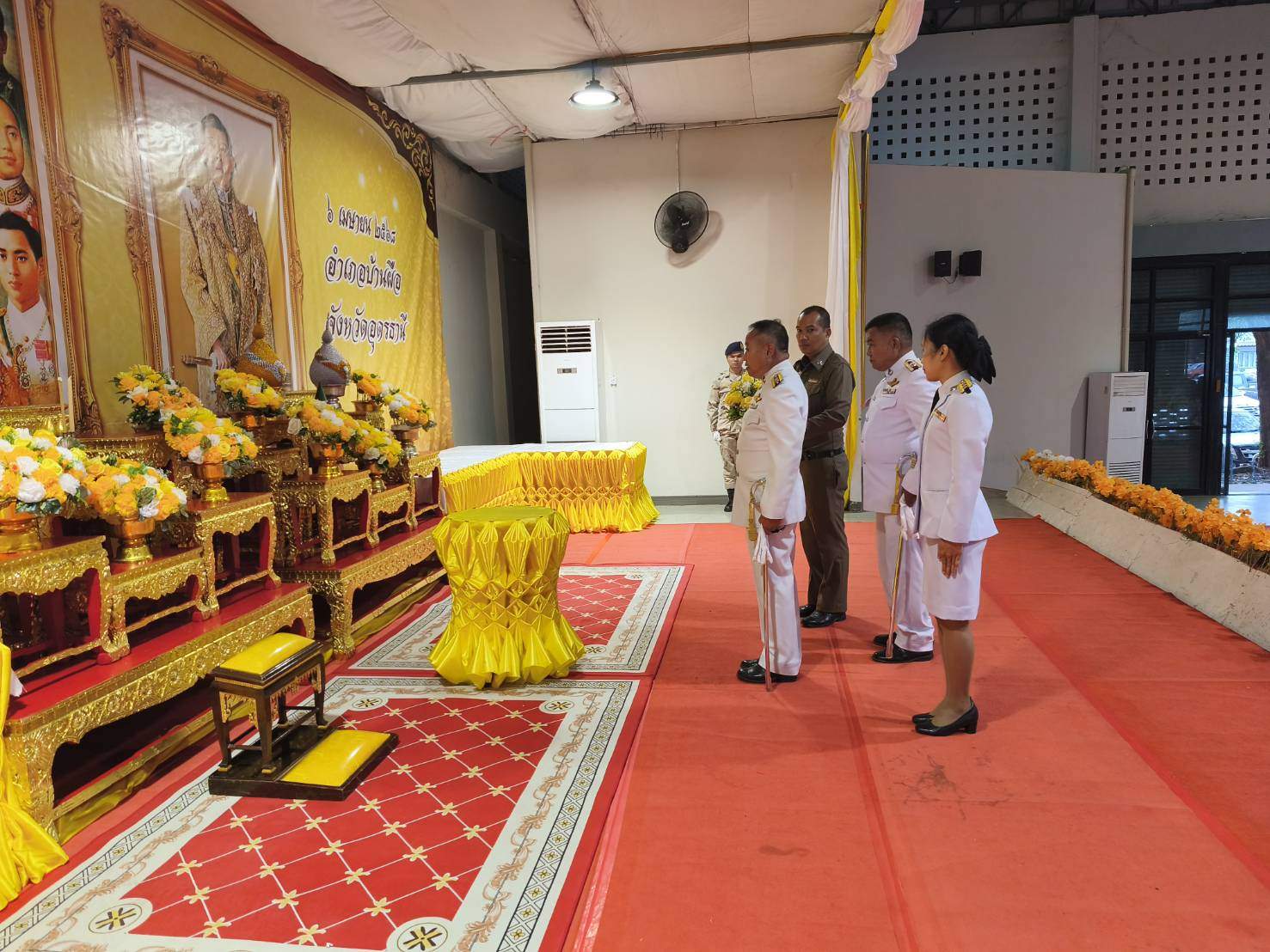 วันที่ระลึกมหาจักรีบรมราชวงศ์ 6 เมษายน 2568 โดย admin-bantueam / ข่าวประชาสัมพันธ์ 6 เม.ย.2568 พ.ต.ท.ธนากร หันจางสิทธิ์ รอง ผกก.สส.สภ.บ้านเทื่อม พร้อม ข้าราชการตำรวจ สภ.บ้านเทื่อม ร่วมพิธีวางพานพุ่มเนื่องในวันพระบาทสมเด็จพระพุทธยอดฟ้าจุฬาโลกมหาราช และวันที่ระลึกมหาจักรีบรมราชวงศ์ ประจำปีพุทธศักราช 2568 ณ.หอประชุมบริบาลภูมิเขตต์ อำเภอบ้านผือ จังหวัดอุดรธานี จำนวนคนดู: 1