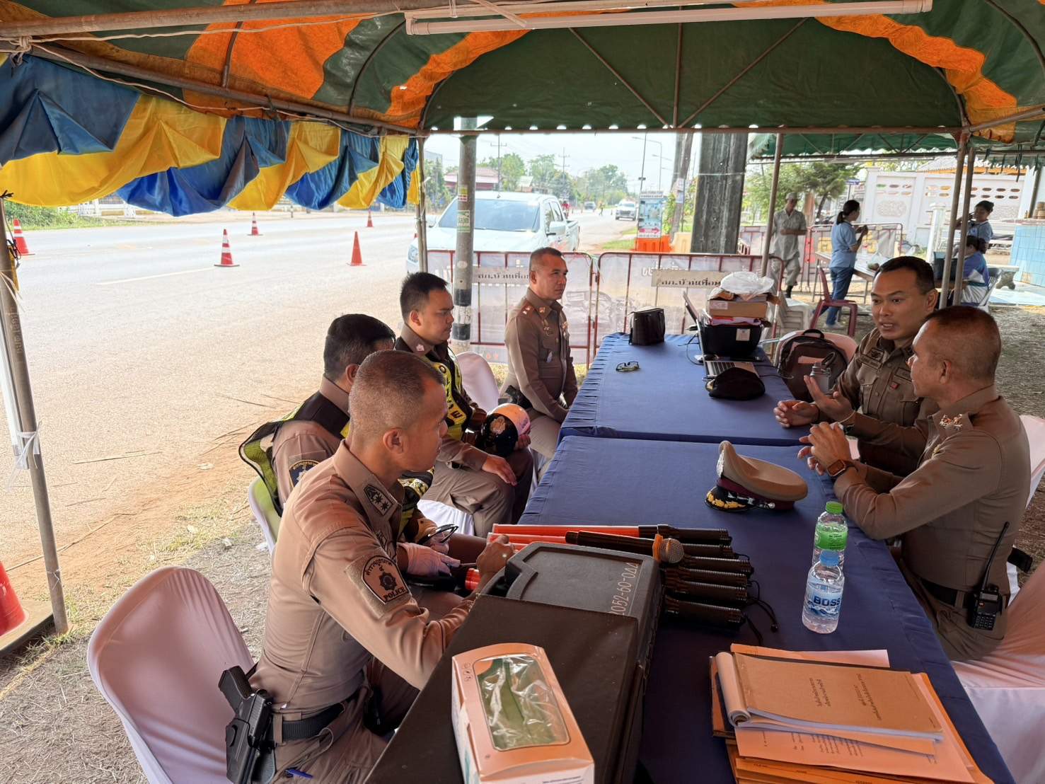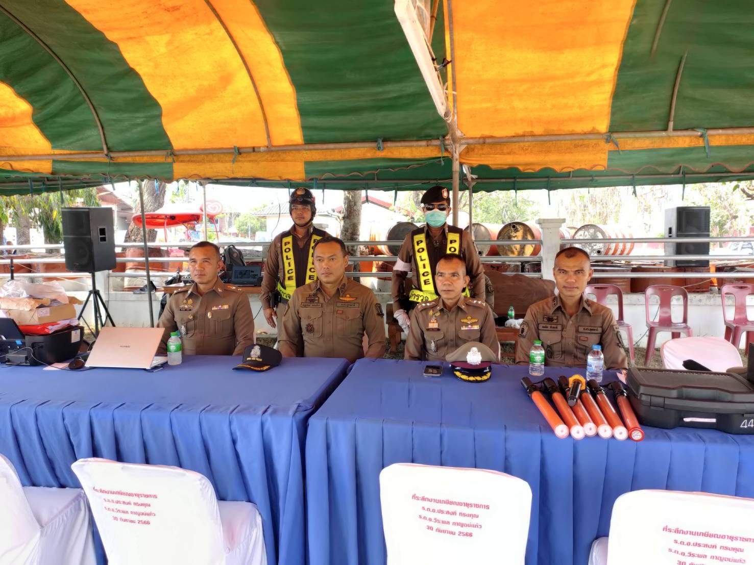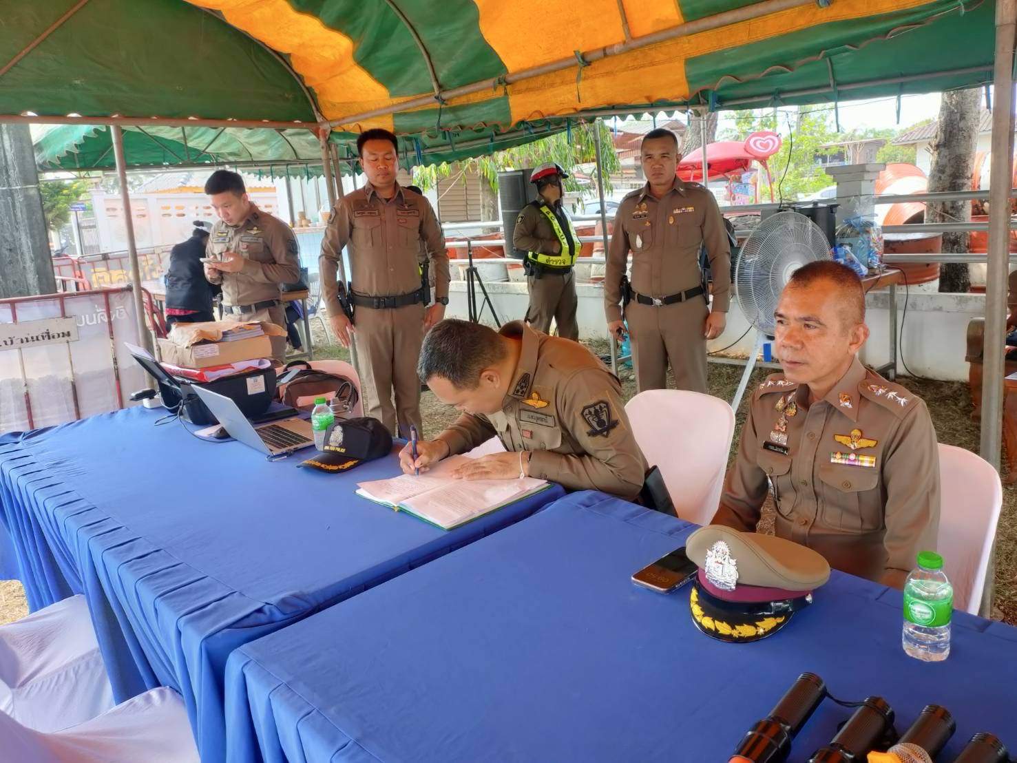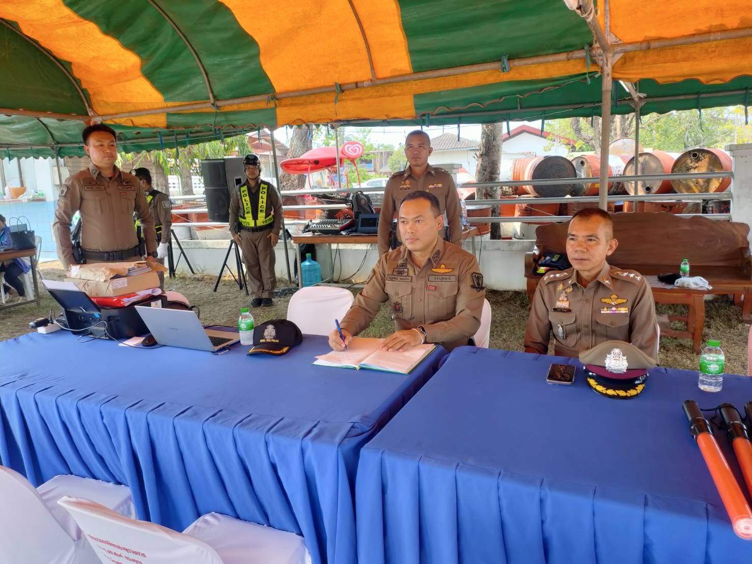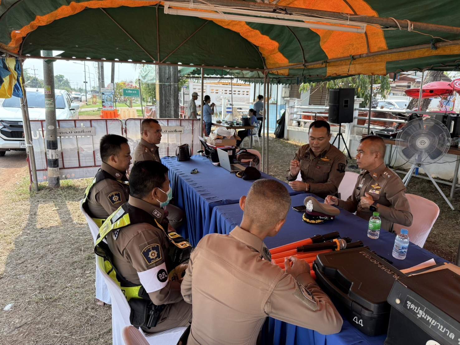 โดยมี พ.ต.อ.นพดล วิเศษศรี ผกก.สภ.บ้านเทื่อม พ.ต.ท.จีระวัฒน์ โพธินา รองผกก.ป.สภ.บ้านเทื่อม พ.ต.ท.สมคิด จันทะดี สวป.สภ.บ้านเทื่อม พร้อมข้าราชการตำรวจประจำจุดบริการประชาชน สภ.บ้านเทื่อม ผญบ.,อสม ให้การต้อนรับ