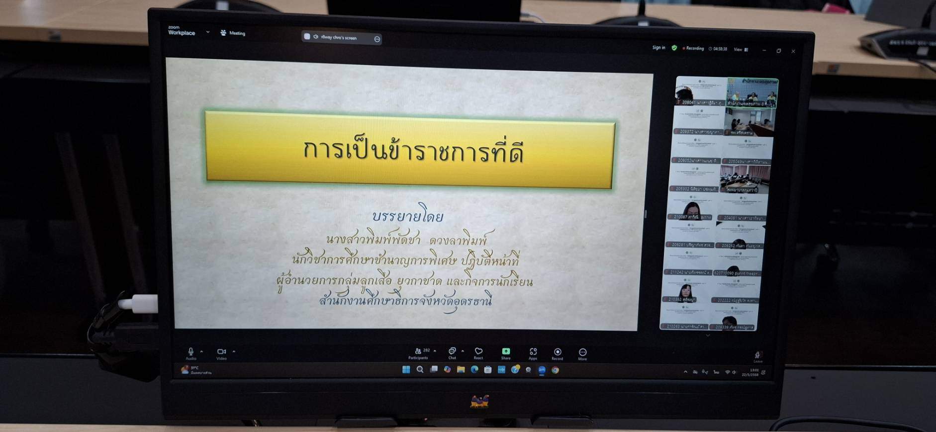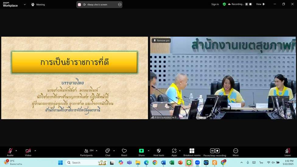 -เป็นวิทยากรบรรยายให้ความรู้ ปรัชญาการเป็นข้าราชการที่ดี ศาสตร์พระราชา จิตอาสา และหลักการทรงงานในรัชกาลที่ 9 และรัชกาลที่ 10 และการปฏิบัติตนในงานพระราชพิธี และรัฐพิธี ณ ห้องประชุมสำนักงานเขตสุขภาพที่ 8 จัดโดย สำนักงานเขตสุขภาพที่ 8 ร่วมกับสำนักงานสาธารณสุขจังหวัดอุดรธานี ตามโครงการจัดอบรมข้าราชการใหม่กระทรวงสาธารณสุข หลักสูตรต้นกล้าข้าราชการ ซึ่งเป็นการจัดอบรมบรรยายผ่านระบบออน์ไลน์ ถ่ายทอดสัญญาณ ไปศูนย์จัดการอบรมทุกจังหวัดในเขตสุขภาพที่ 8 โดย ดร.นพ.สมชายโชติ ปิยวัชรเวลา หลักสูตรพื้นฐาน รุ่นที่ 4/63 รหัส 4ก-424 ผู้เข้ารับการฝึกอบรมทราบซึ้งในพระราชกรณียกิจ สามารถนำความรู้ที่ได้รับถ่ายทอดไปบูรณาการขยายผลสู่การปฏิบัติ ดำรงตนเป็นต้นกล้าข้าราชการที่ดี ให้บริการประชาชนอย่างเต็มศักยภาพ ตามมาตรฐานแห่งวิชาชีพต่อไป จำนวนผู้เข้าร่วมกิจกรรมข้าราชการบรรจุใหม่ จำนวน 300 คน การสมัครจิตอาสาผู้เข้าร่วมกิจกรรม สมัครแล้ว 280 คน ยังไม่สมัคร 20 คน